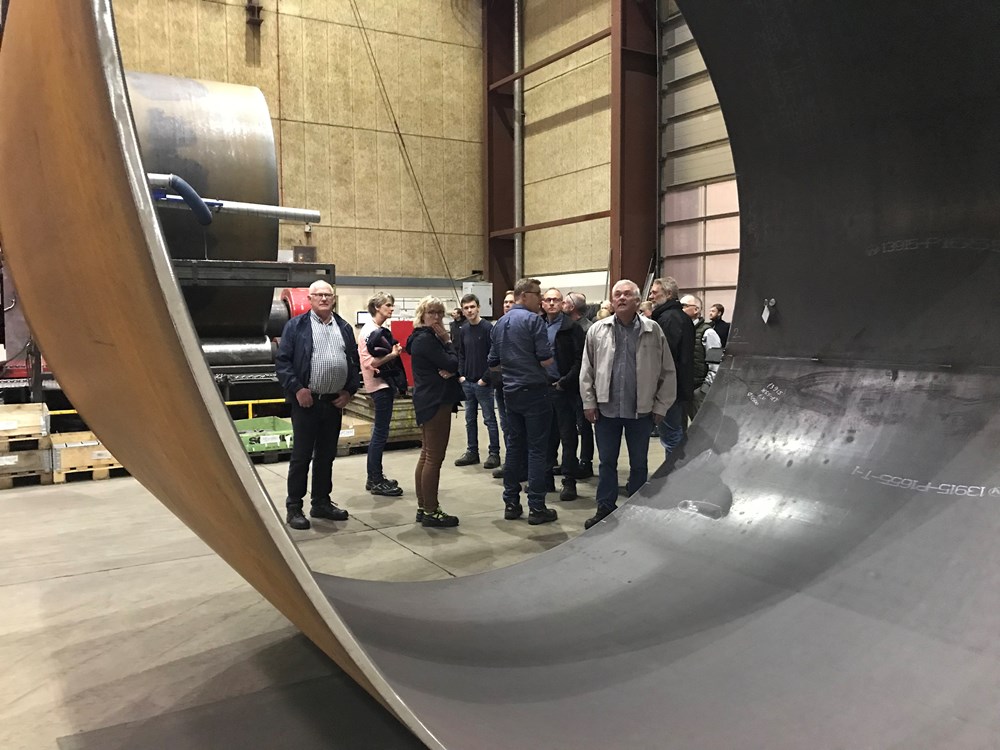 En rundvisning blandt gigantiske stålkonstruktion til vindmølletårne og en gennemgang af Stiesdahls spændende udviklingsprojekter til lagring af energi og CO2 var på aftenens program. Tak til værter og deltagere for en spændene aften.